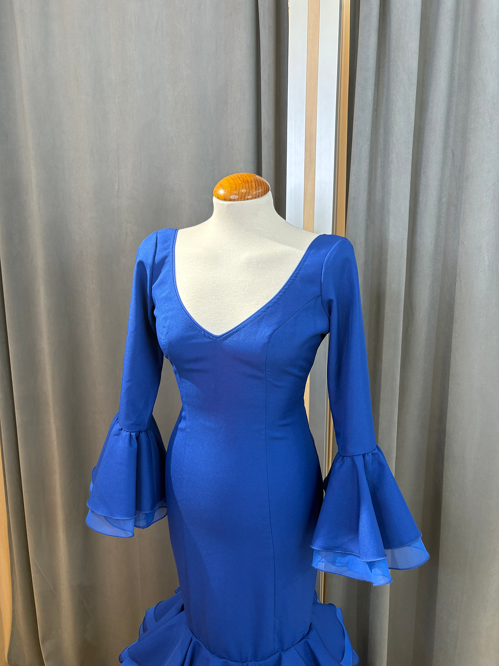 Traje Flamenca Candela Licra Celeste lunar Marrón