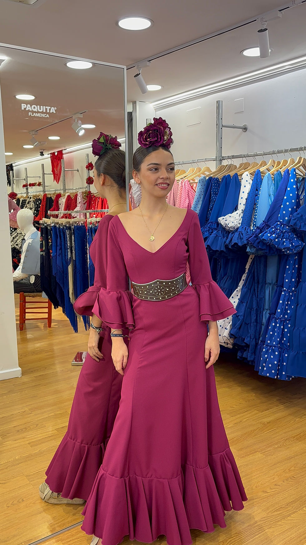 Maillot con escote delantero en forma de corazón fruncido en el centro delantero. Escote espalda en forma de U. Costadillos con pespuntes de carga. Manga larga montada.