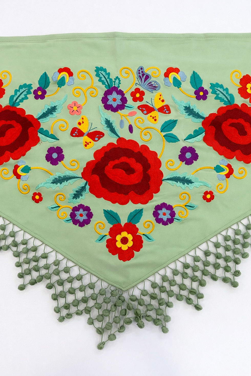 El Mantón Tejido Bordado es el complemento perfecto para cualquier traje de flamenca. Confeccionado en un hermoso tejido bordado a tonos, este mantón presenta un elegante flecado en hilo de seda que le da un toque único. Su combinación de colores lo hacen versátil y fácil de combinar con una variedad de trajes flamencos. Ideal para romerías y ferias, este mantón añade un toque de sofisticación y tradición a cualquier atuendo.